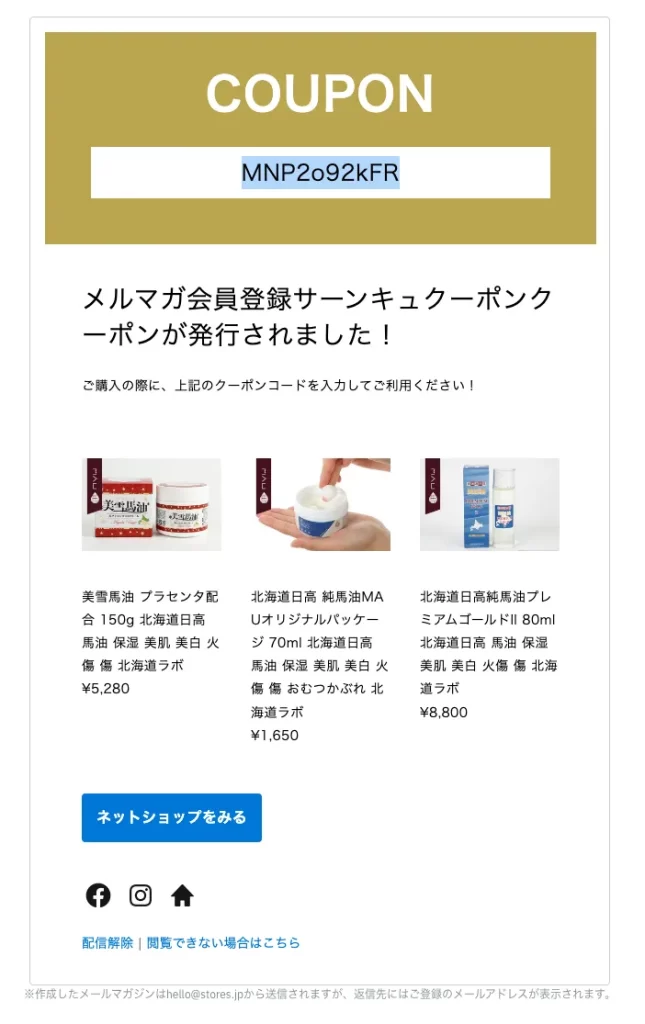 メルマガ会員にはお得な割引クーポンが発行されます。